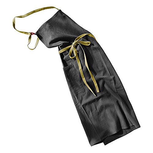 Anyasun エプロン 首掛け リネン カフェ風 シンプル おしゃれ ナチュラル 北欧 無地 おしりが隠れる ポケット付き 男女兼用 13 ダ