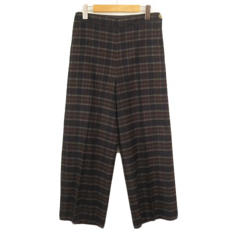 【中古】ニューヨーカー NEWYORKER パンツ ワイド チェック 9 黒 ブラック レディース