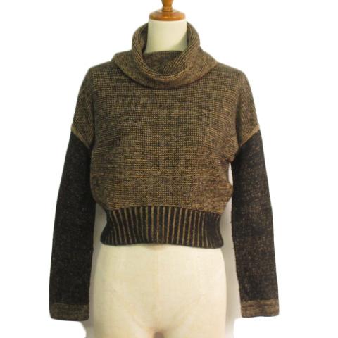 【中古】ザラ ZARA セーター ニット オフタートル クロップド S 黒 ブラック ベージュ レディース