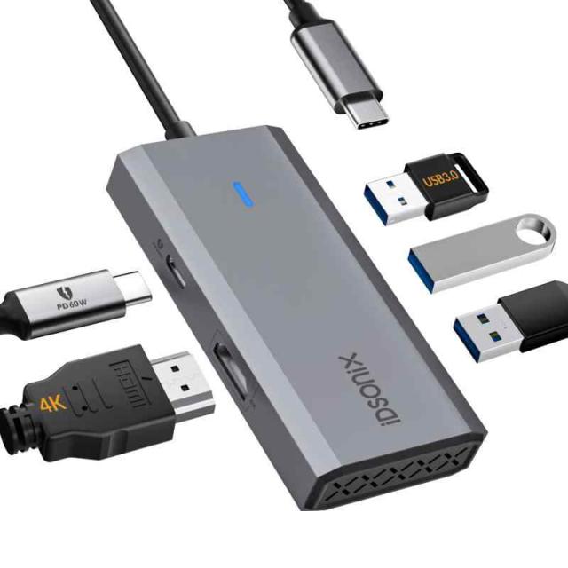 【4K安定版】iDsonix usb-c ハブ type-c hdmi タイプc hub usb3.0 5Gbps macbook/surfaceに対応 36ヶ月(HDMIポート+usb3.0*1+usb2.0*2+PD充電ポート)