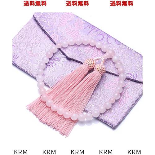 【落ち着いたピンク】色はピンクですが、落ち着いたピンクです。渋い数珠を嫌がる10代20代などの若い方に特におススメしますが、愛らしくエレガントな数珠をお望みの年配の方にももちろん最適です。