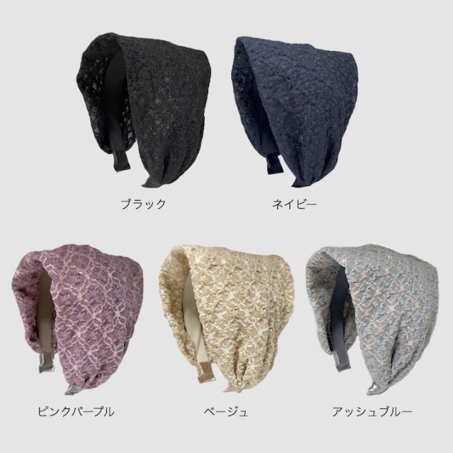 レース カチューシャ ネイビー 紺 ベージュ 黒 ブラック 紫 ブルー 幅広 ヘアバンド ヘアアクセサリー レース ターバン 白髪隠し 薄毛隠し まとめ髪 普段使い 大人 可愛い おしゃれ 幅広 カチューシャ