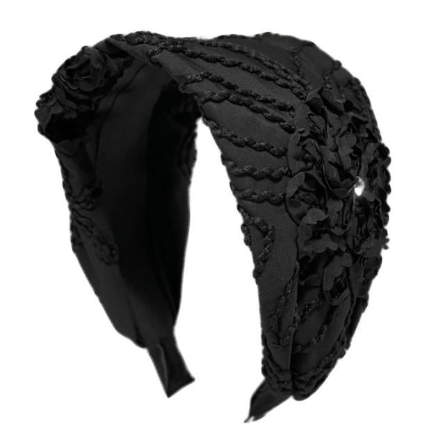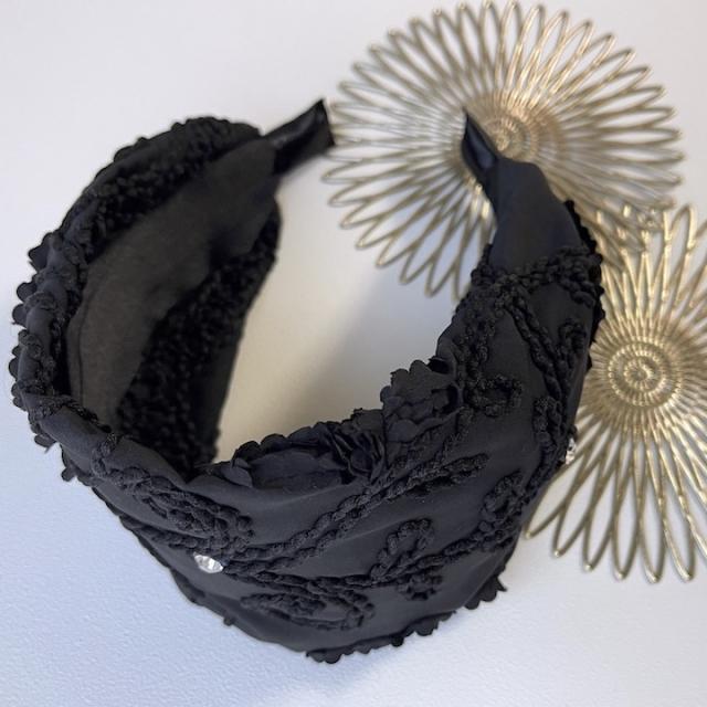 【関連ワード】花 カチューシャ 黒 ブラック 幅広 ヘアバンド ヘッドアクセサリー ヘアアクセサリー ターバン 白髪隠し 薄毛隠し 高級感 大人 可愛い 冠婚葬祭 おしゃれ 敬老の日 母の日 プレゼント ギフト 30代 40代 50代 60代