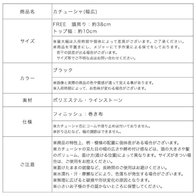 ※カチューシャの見た目の幅の広さや締め付け感などは、頭の大きさや髪のボリューム、着け方(着ける位置)によって異なります。サイズがきつい場合は、ご使用をお控えください。