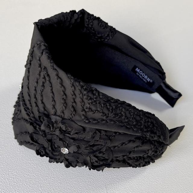 カチューシャ 幅広カチューシャ 幅広 白髪隠し 薄毛隠し 花 カチューシャ 黒 ブラック 幅広 ヘアバンド ヘアアクセサリー ターバン 白髪隠し 薄毛隠し 高級感 大人 可愛い 冠婚葬祭 おしゃれ 敬老の日 母の日 プレゼント ギフト【MOORN/モーン】MRN-KA23051