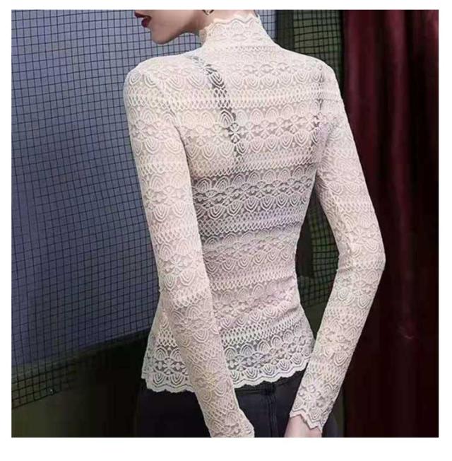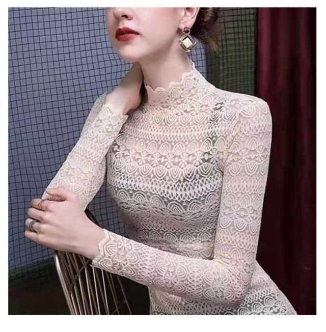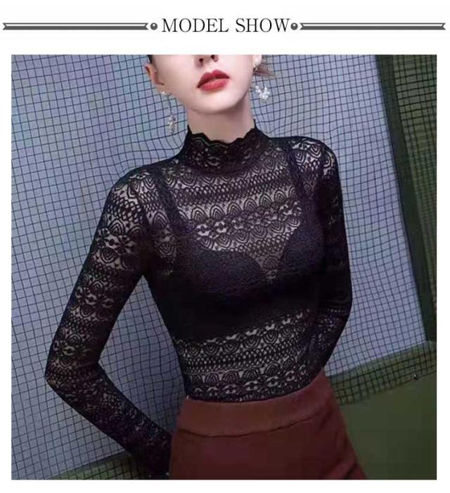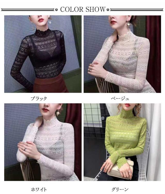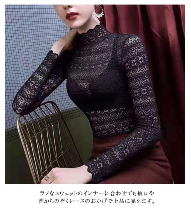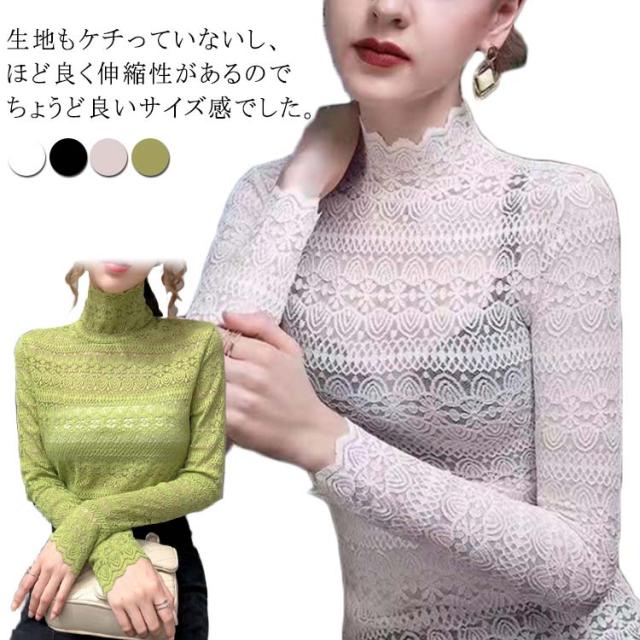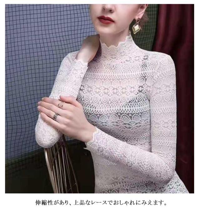 レース tシャツ レディース トップス ブラウス 長袖 レースシャツ 総レース 花柄 レースtシャツ インナー ハイネック 秋 冬 通勤 透け感 セクシー おしゃれ 着回し 重ね着 通勤 春 着痩せ きれいめ フェミニン カットソー 伸縮性