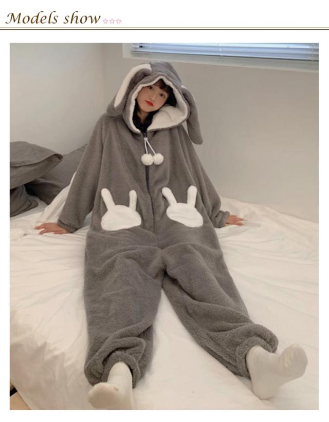 ルームウェア レディース うさぎ 長袖 もこもこ 冬用 長袖 着ぐるみ 動物 大人用 パジャマ 秋 可愛い 寝巻き 着る毛布 パジャマ お揃い フード付き 防寒 暖かい フリース パーカー アニマル 部屋着 女子会 修学旅行