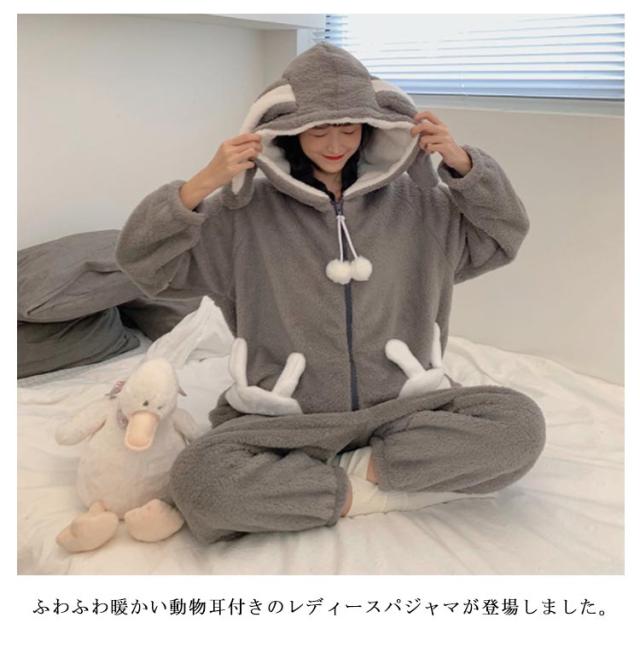 | 【大人気の可愛いデザイン】ふわふわ暖かい動物耳付きのレディースパジャマが登場しました。かわいさ満載のルームウェアなので、お部屋でのリラックスウェアとしてはもちろんのこと、フォトジェニックなアイテムとしても使えます。 【女子力の高いキュートなレディースパジャマ】女性用の防寒対策用のルームウエア・部屋着としても、寒さが苦手な方にもオススメです。パジャマとして旅行先でも活躍します。 【毛足長めのふっくら生地で保温性バッチリ】ふわふわで柔らか軽いボアフリース、極細糸を使用し、とてもなめらかで暖か,軽いマイクロフリースを使用。 【両面起毛だから、超ふわふわ】ふわふわのボアフリースとなめらかなマイクロフリースで抜群に暖かく心地よい。両サイドに大きめのポケットが付いているのも嬉しいポイントです。 | |