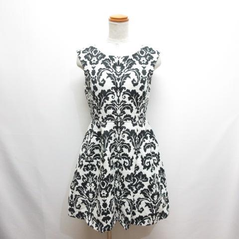 【中古】ダイアグラム グレースコンチネンタル 美品 ノースリーブ ジャガード ワンピース ドレス 36 白 黒 裏地付き