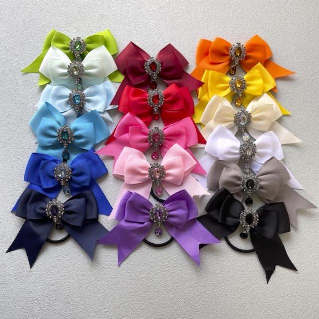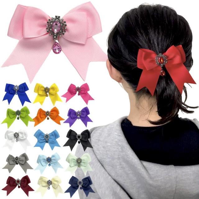 リボン ヘアゴム ヘアクリップ 17カラー リボン ストーン ヘアゴム ヘアクリップ 黒 ブラック 赤 ネイビー 紺 白 紫 緑 青 黄色 ピンク シンプル レディース ヘアアクセサリー 子供 キッズ 衣装 ダンス 推し活 オタ活 ヘアアレンジ