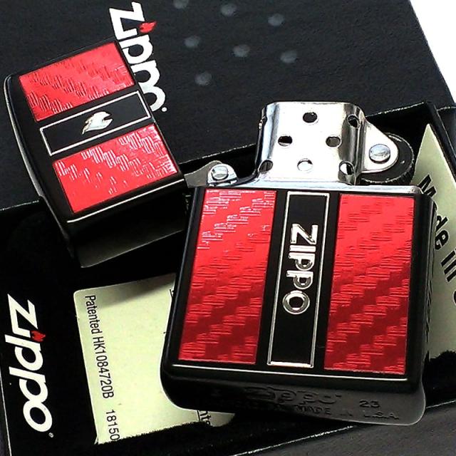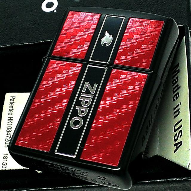 ZIPPO ライター レッドカーボン ロゴ フレーム 銀差し 珍しい ジッポー 彫刻 炎 マットブラック 銀 かっこいい 赤 お洒落 黒 ギフト
