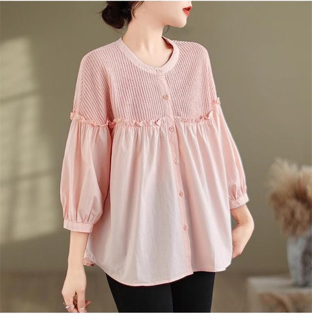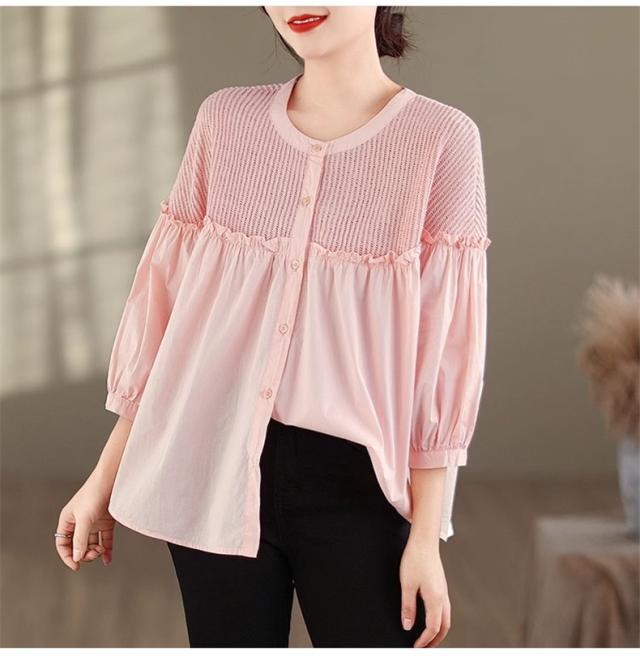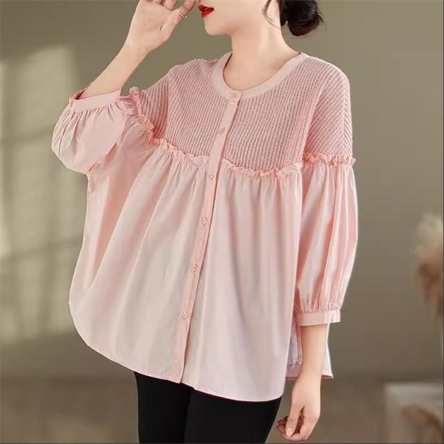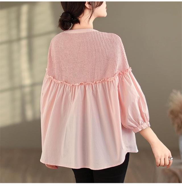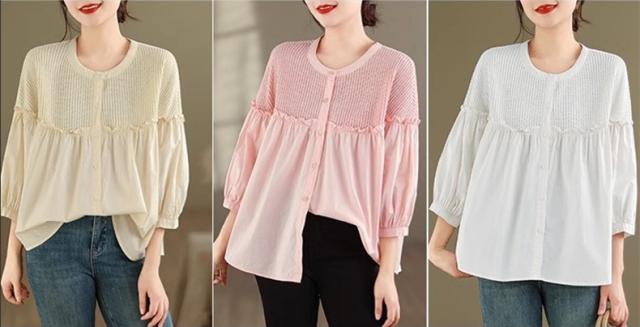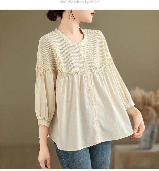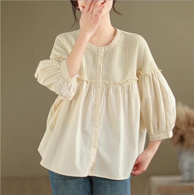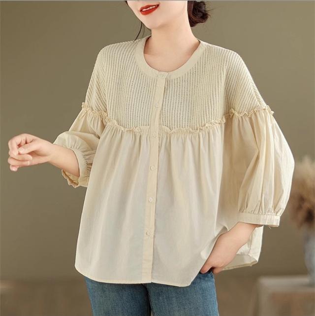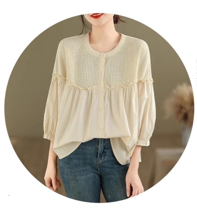 春ブラウス レディース トップス 異素材 切り替え ゆったり 大人可愛い 季節が進んで春になると 1枚ですっきりとしたシルエット 着こなしの幅グッとUP