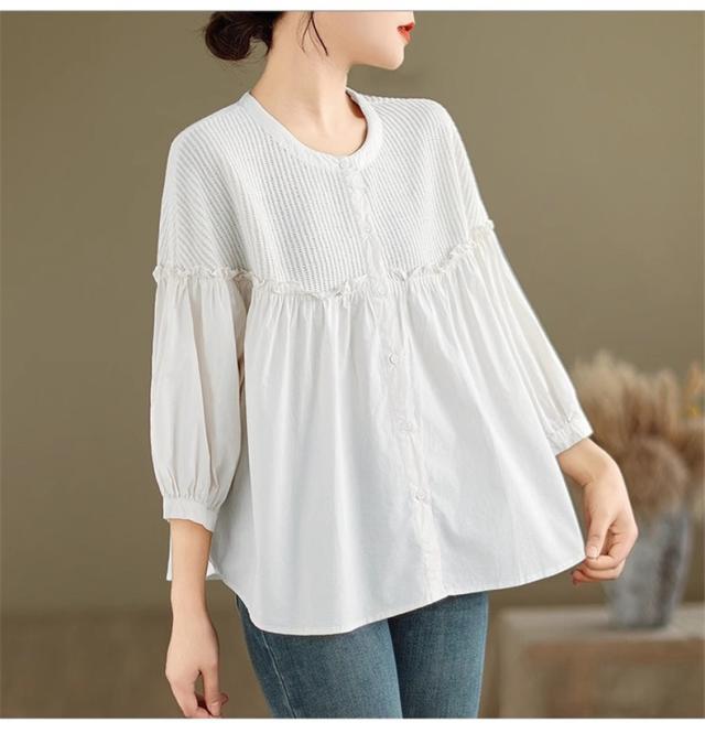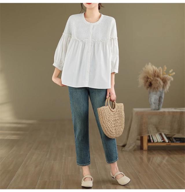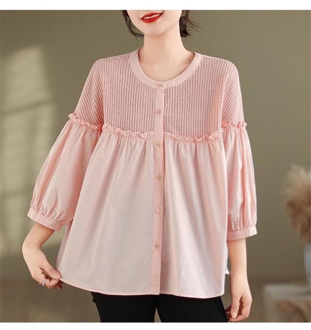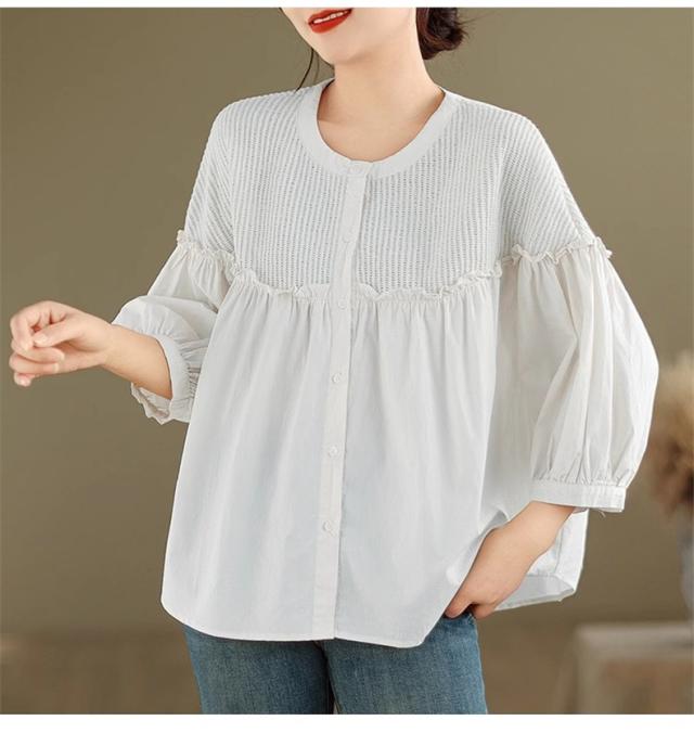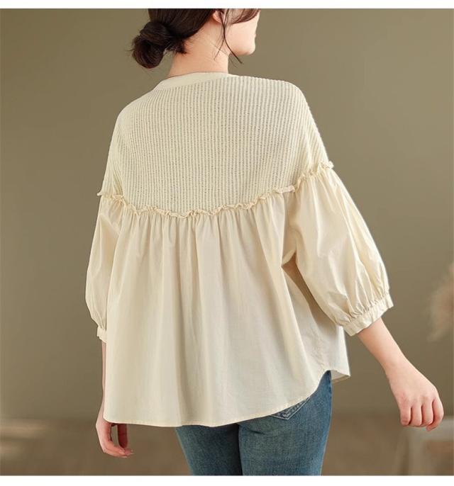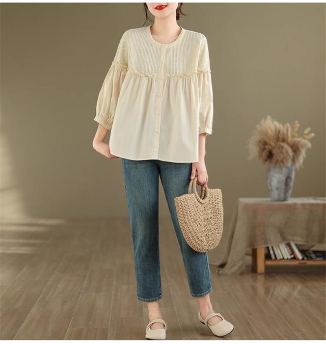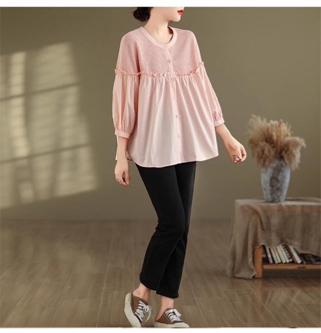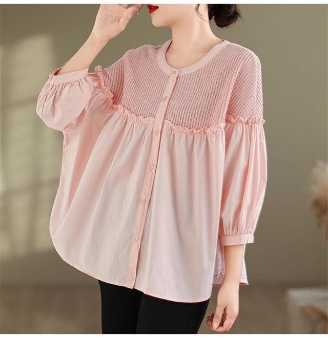 春ブラウス レディース トップス 異素材 切り替え ゆったり 大人可愛い 季節が進んで春になると 1枚ですっきりとしたシルエット 着こなしの幅グッとUP