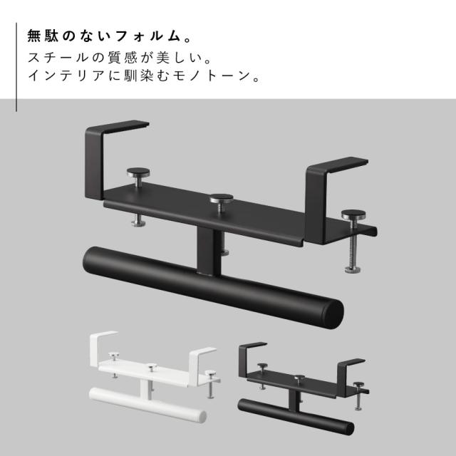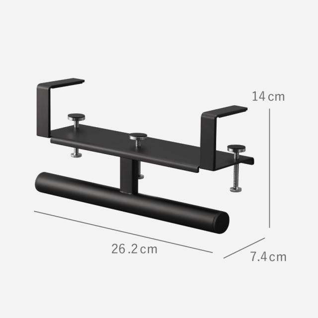 ■取り付け可能な天板・壁面:天板の厚さが約1.2〜5cm(幕板やパイプなど含む)・ 幅約26.2cm以上(脚含まず)・奥行き約7.4cm以上のデスクやテーブル、キッチンカウンター ※設置する部分の構造によっては取り付けできない場合があります。