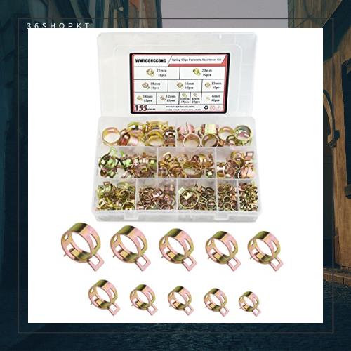 WMYCONGCONG 155枚セット 6-22mm 10サイズ スプリングクランプホースバンドクリップ 65Mn鋼製 亜鉛メッキ パイプチューブ ファスナー シ