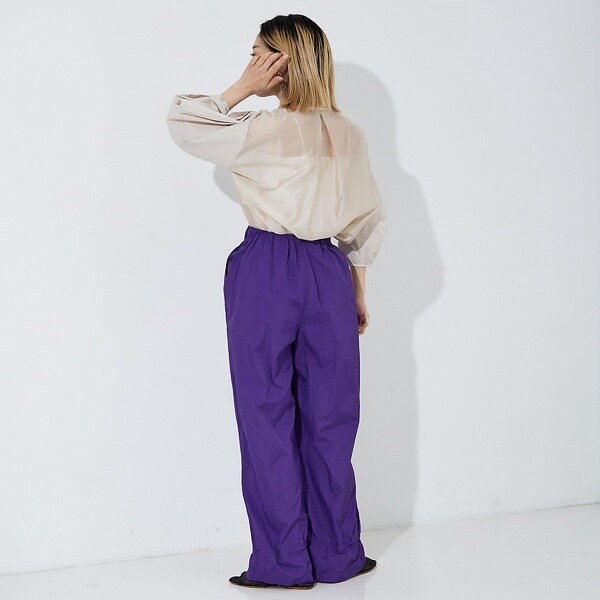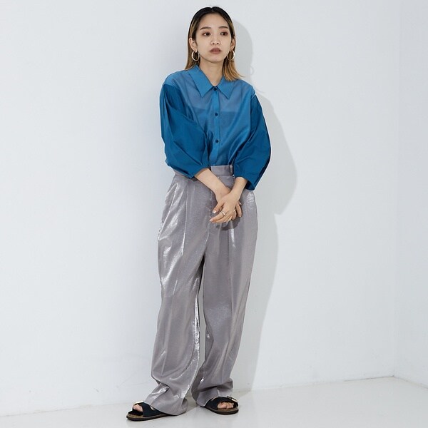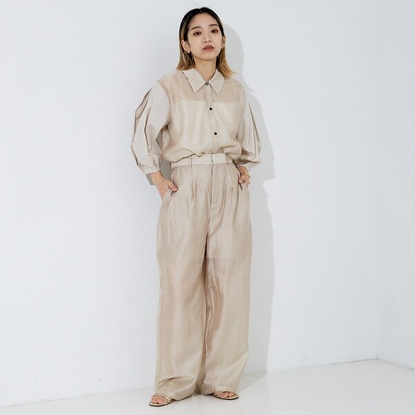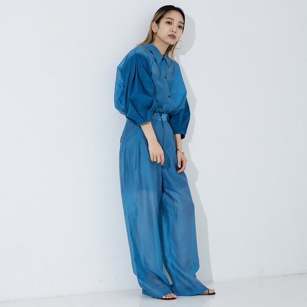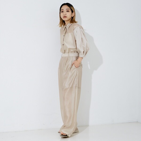 シアー生地の同素材でのパンツもご用意があり、セットアップで着用をお勧めします。