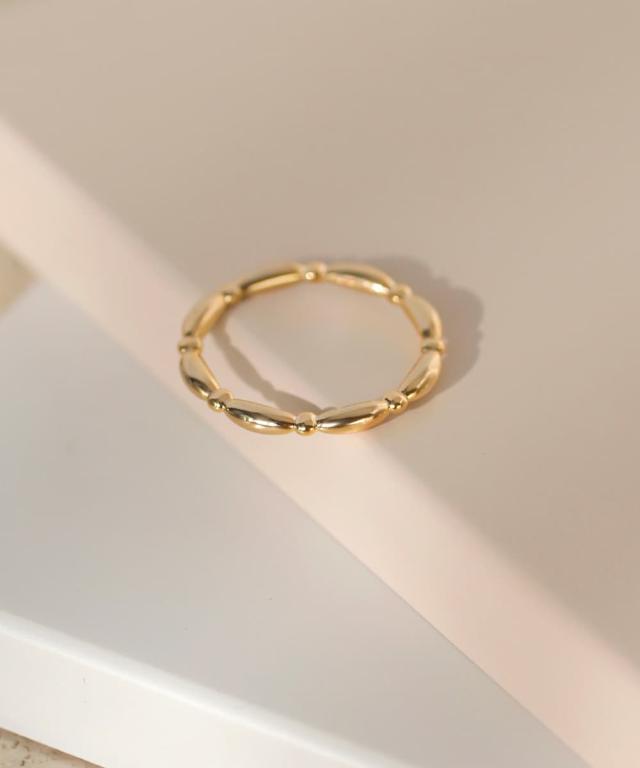 スリムなメタルが煌めき、手元を可憐な印象に仕上げるリング。