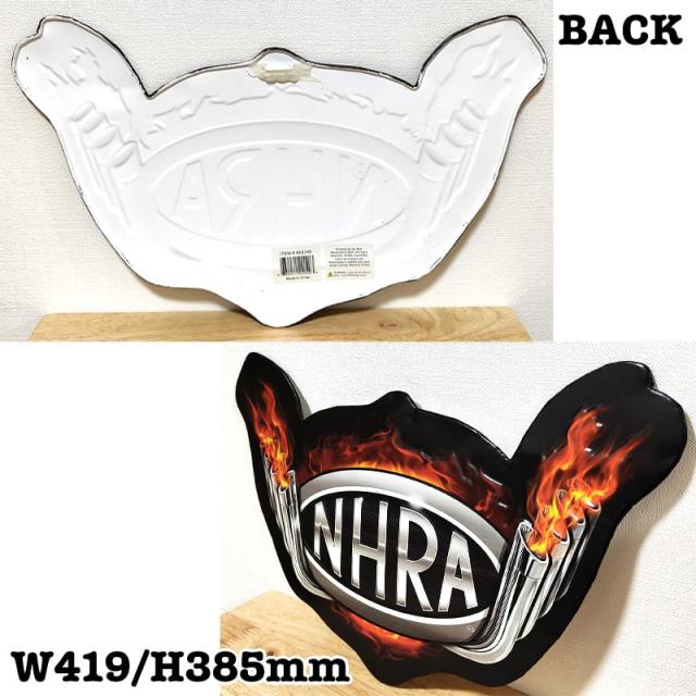 ブリキ看板 NHRA Flames エンボスメタルサイン かっこいい アメリカン 雑貨 ガレージ ロゴ ビンテージ ブラック