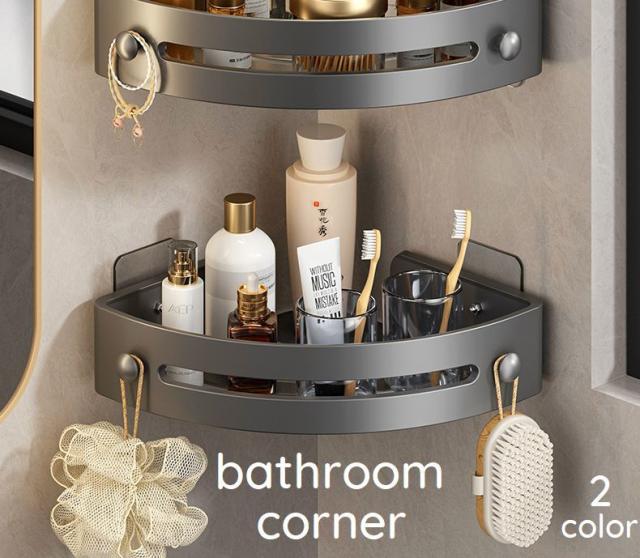 バスルームコーナー 浴室収納 浴室棚 三角 隅 吸盤 壁を傷つけない プラスチック 高級感 シンプル 無地 きれいめ かっこいい