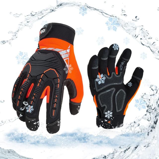 Vgo... 0℃低温作業手袋 3Mシンサレート 裏起毛 防寒テムレス タッチパネル 防水防寒作業手袋 衝撃緩和 振動低減 バイク手袋SL8849FLWP