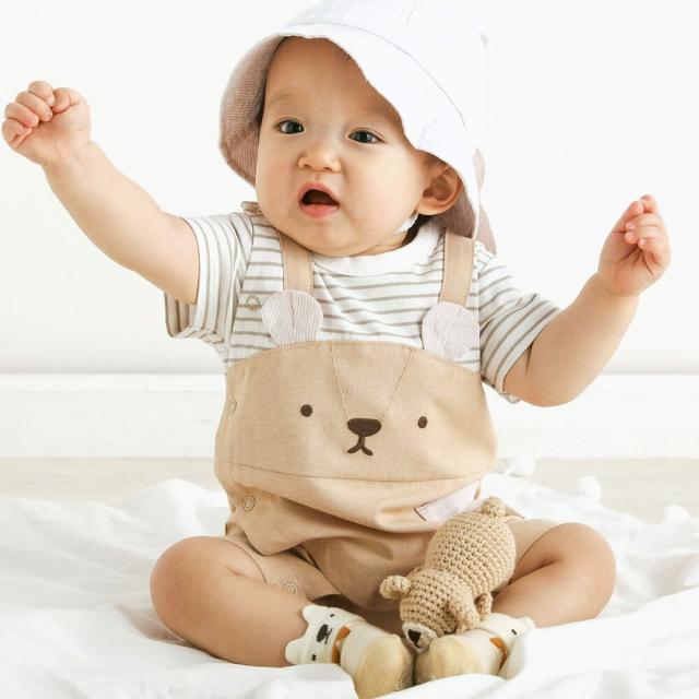 【40%OFF 2024春物 ベビー 赤ちゃん 男の子】 SLAP SLIP(スラップスリップ) ダンガリークマさんフェイスサロペット風ロンパースベビー
