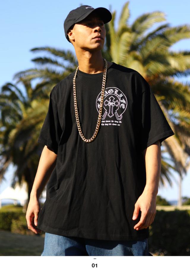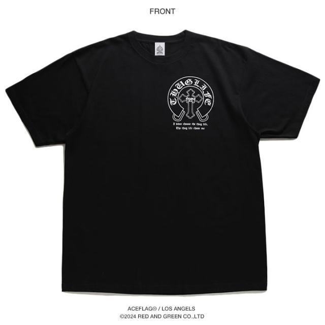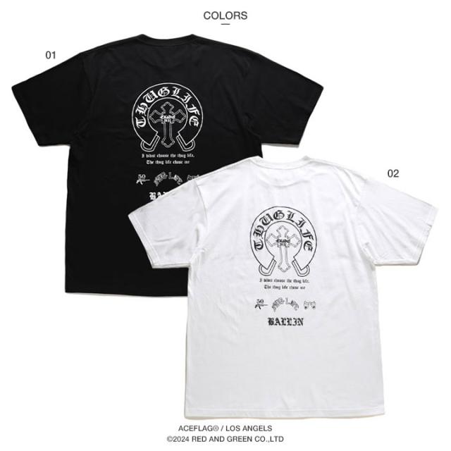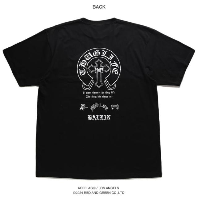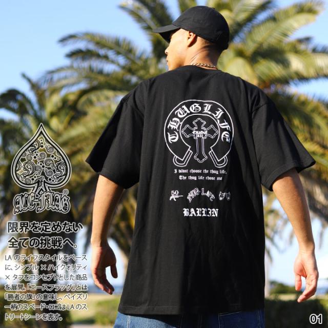 ACE FLAG Tシャツ 半袖 メンズ 春夏用 黒/白 大きいサイズ エースフラッグ おしゃれ シンプル Thug Life サグライフ 馬蹄 十字架 クロス 2Pac オーバーサイズ ビッグシルエット b系 ヒップホップ ファッション ストリート系 ハイ ブランド 服 新作 AF-TS-TS-070