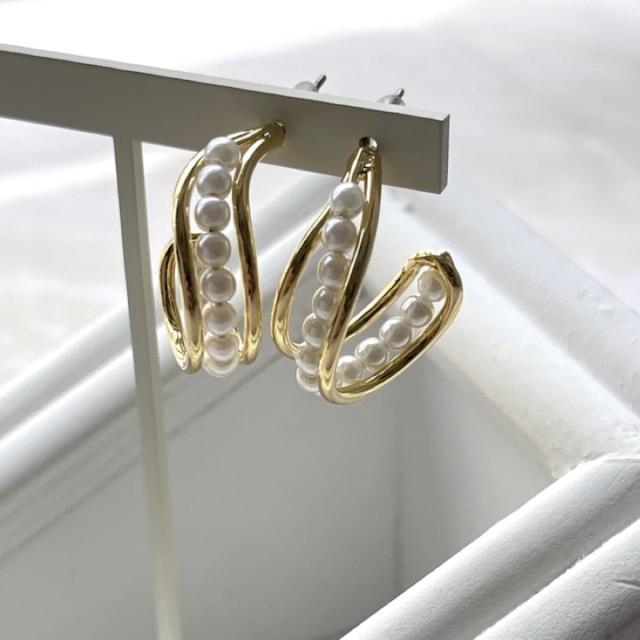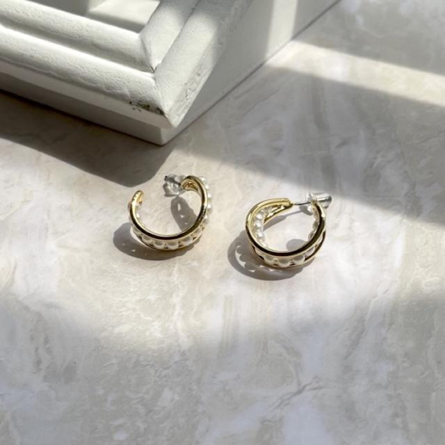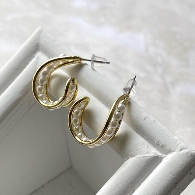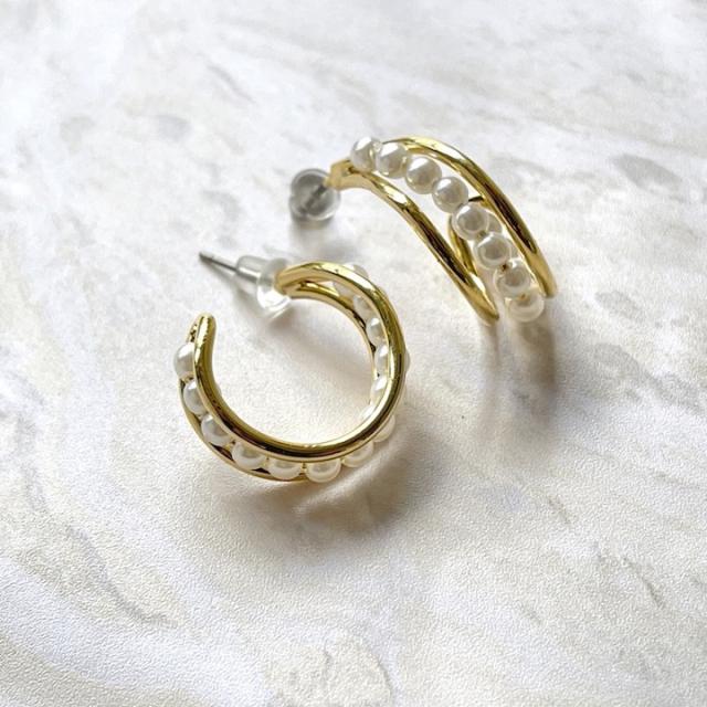 ピアス パール レディース 両耳 フープピアス 結婚式 パーティー お呼ばれ 入園式 卒園式 入学式 卒業式 シンプル ゴールド ピアス イヤリング レディース アクセサリー おしゃれ デイリー 韓国【MOORN/モーン】MRN-ER23107