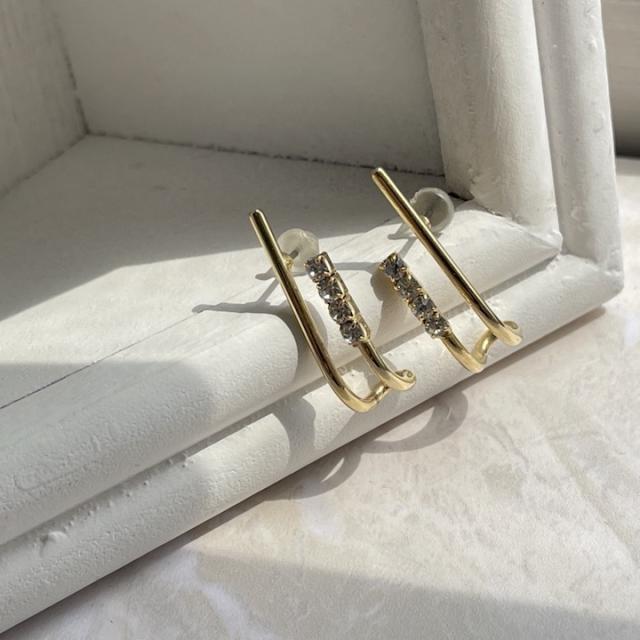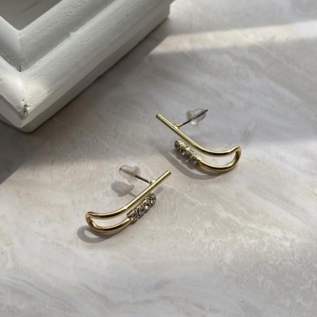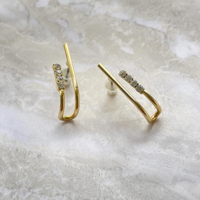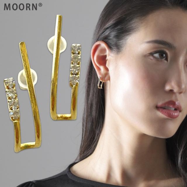 ピアス ゴールド レディース ストーン ピアス 両耳 デザインピアス ラインストーン キラキラ シンプル ゴールド ピアス イヤリング レディース アクセサリー おしゃれ 結婚式 パーティー お呼ばれ 入園式 卒園式 入学式 卒業式 デイリー 韓国【MOORN/モーン】MRN-ER23108