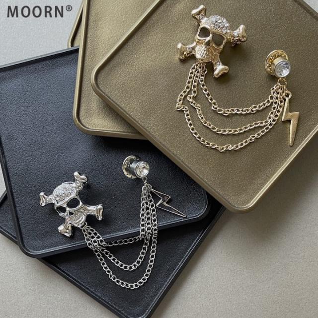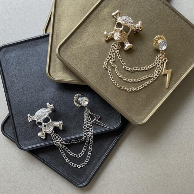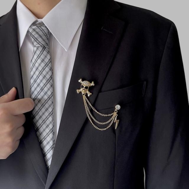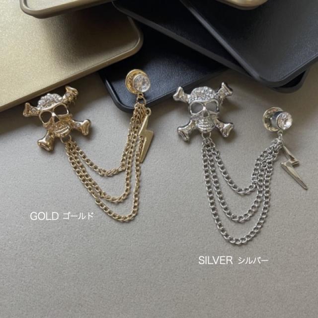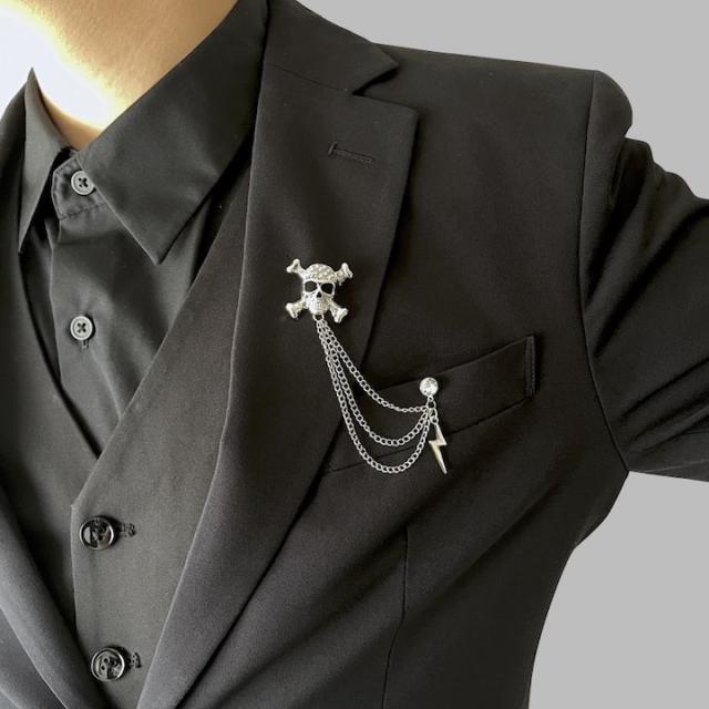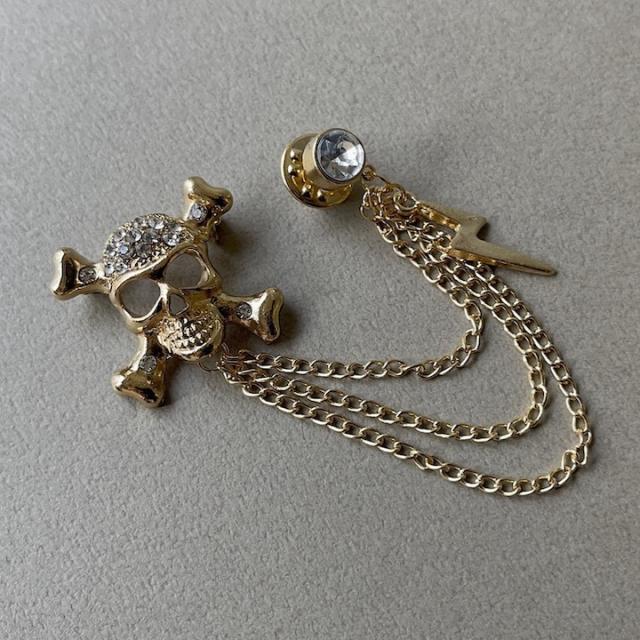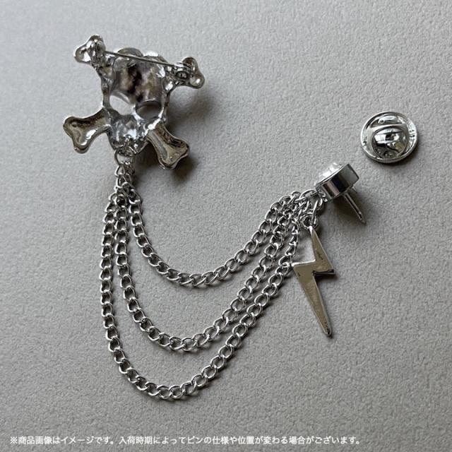 ブローチ メンズ かっこいい ドクロ イナズマ チェーン ピンブローチ ピンズ ブローチ 髑髏 骸骨 海賊 コスプレ メンズ レディース ゴールド シルバー ラペルピン 結婚式 入学式 卒業式 成人式 発表会 おしゃれ かっこいい メンズブローチ プレゼント【MOORN/モーン】