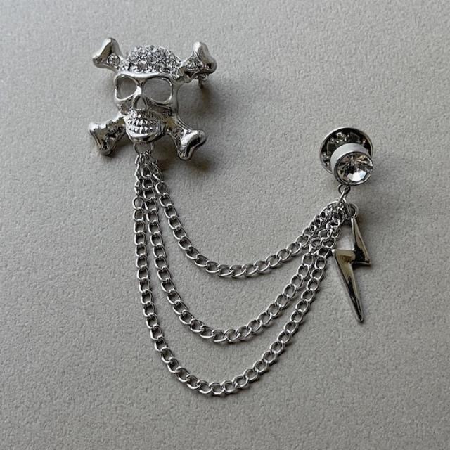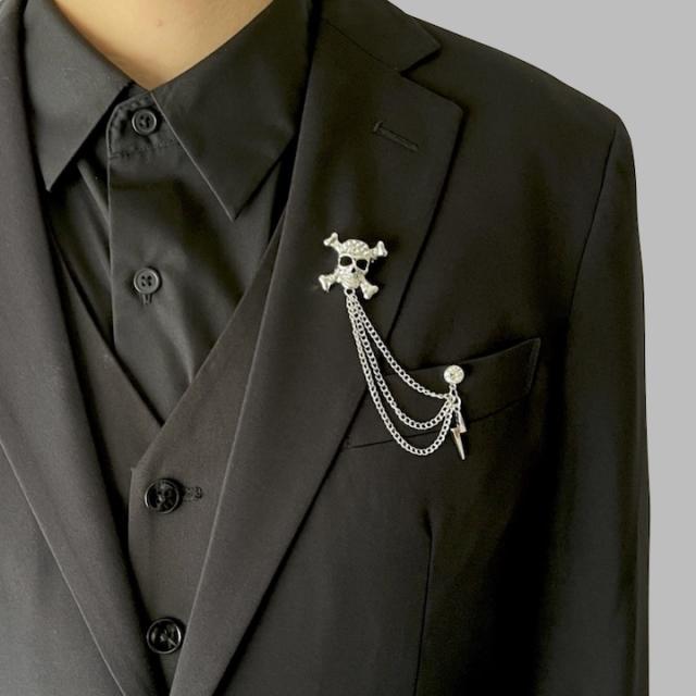 ブローチ ドクロ チェーン メンズ ピンブローチ 髑髏 骸骨 成人式