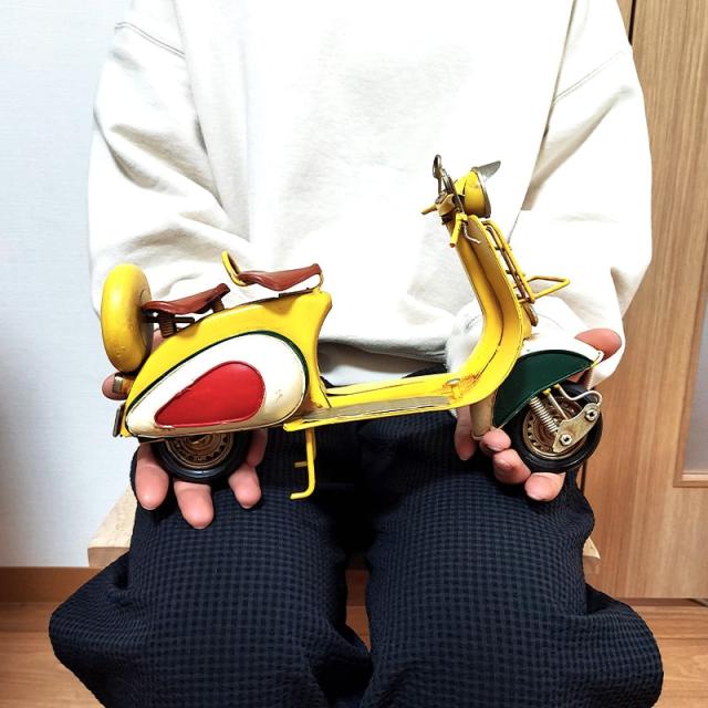 ヴィンテージ バイク オブジェ Scooter ITALY ブリキ 置物 おしゃれ レトロ スクーター アンティーク インテリア イエロー 可愛い 雑貨