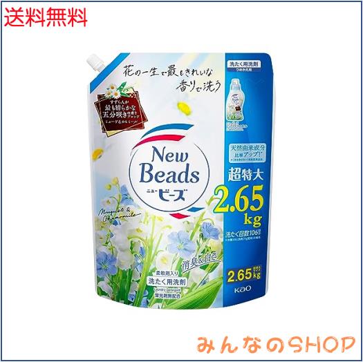 ◆商品名:【大容量】ニュービーズ ピュアクラフト 消臭&白さ 五分咲きすずらんの香り配合 柔軟剤入り ミューゲ&カモミールの香り 詰替え用 2,650g