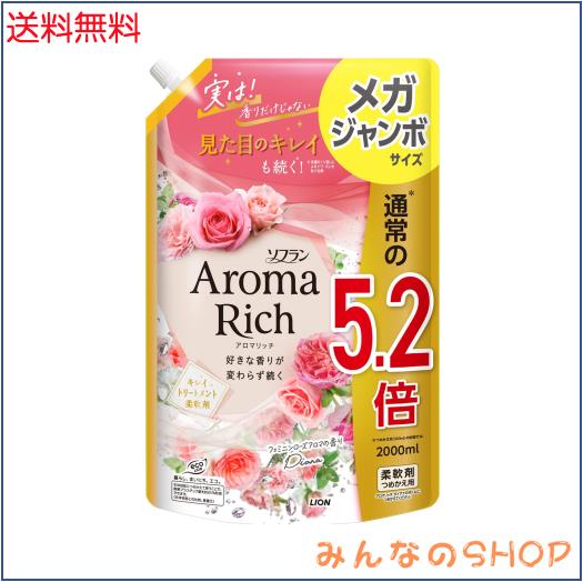 【大容量】 ソフランアロマリッチ ソフラン アロマリッチ ダイアナ(フェミニンローズアロマの香り) 柔軟剤 詰め替え メガジャンボ 2000ml