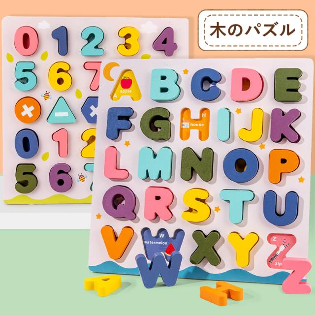 知育パズル 木のパズル A・B・C 1・2・3 知育玩具 木製玩具 教育玩具 算数パズル 英語パズル おもちゃ パズル プレゼント