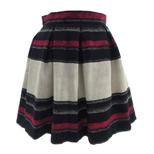 | 仕様 | スカート タック フレア ひざ丈 ツイード転写プリント ボーダー 左脇ジップアップ ウエストゴム |