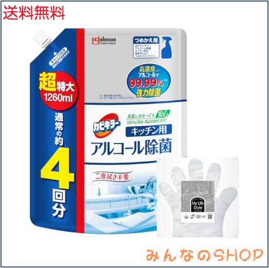 ◆商品名:カビキラー アルコールスプレー キッチン用 詰め替え用 超特大 1260ml お掃除用手袋つき 日本製 アルコール除菌 除菌スプレー 除菌剤 ま