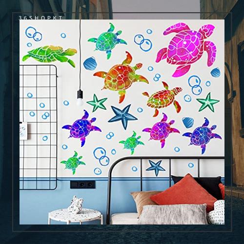 WOHAHA ウォールステッカー おしゃれ 海 海亀 カラフル 可愛い 動物 ウォールシール バブル ヒトデ 装飾 トイレ お風呂 こども部屋 toy r