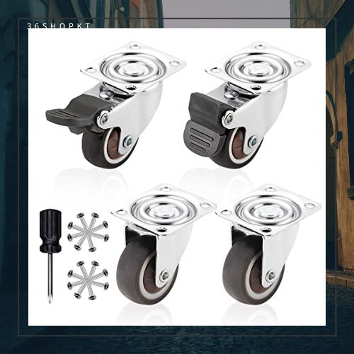 【パッケージ 内容】キャスター*4個1セット、ブレーキあり2個、ブレーキなし2個、16個のステンレススチール製ネジ、ドライバ—あり1個