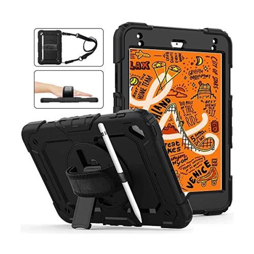 【快適なハンドストラップ・ショルダーストラップ・360°回転スタンド】:どの場所、状況でも使いやすいハンドストラップ・ショルダーストラップ・スタンドは遊び、旅行中などに両手が自由になります。子供にもiPad Mini5/Mini4が気楽に楽しめます。