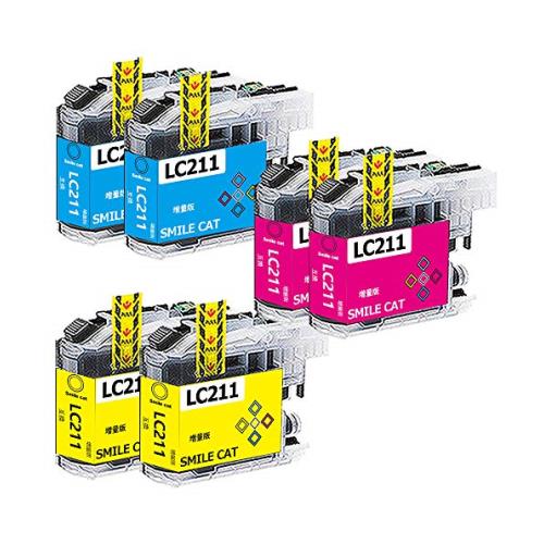 【SMILE CAT】Brother用 互換インク LC211-4PK(2C/2M/2Y)ブラザー lc211 インクカートリッジ 3色6本セット, ICチップ付き 残量表示機能
