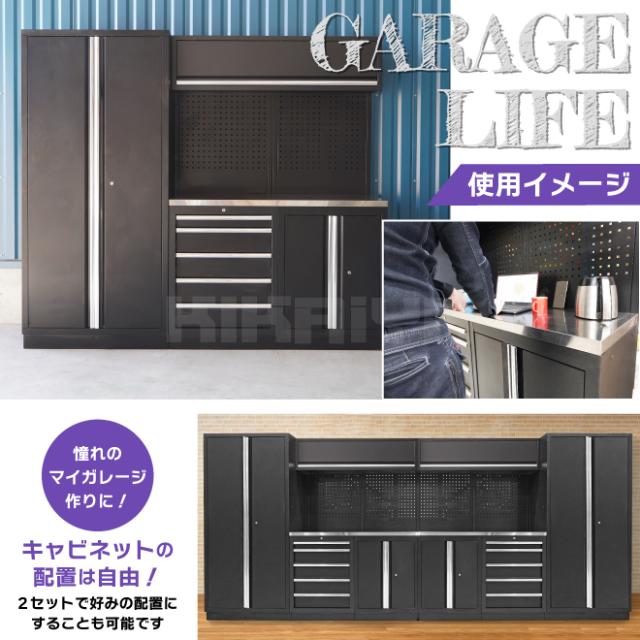 ガレージ キャビネット コンビネーション H2000×W2280×D485mm 作業台 ステンレス天板 ロッカー メッシュボード スチール