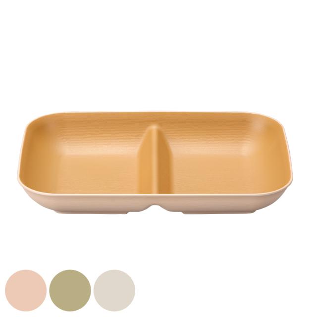 ランチプレートとして使うのにぴったりな仕切り付きのお皿です。樹脂製なので軽くて使いやすく、割れにくいのが特徴です。持ち運びにも便利なので、アウトドアシーンにもおすすめです。