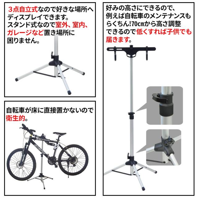 自転車 スタンド 1台用 室内 三脚式 一段式 自転車用 ディスプレイスタンド アルミ製 突っ張り式 つっぱり式 サイクルスタンド 汎用 室内 屋内 マウンテンバイク ロードバイク クロスバイク 自立式 角度調整可能 60度 自転車置き 自転車収納 スタンド式 ロック 送料無料