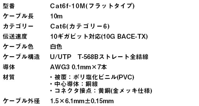 ■ Cat6f-10M(フラットタイプ)ケーブル スペック
