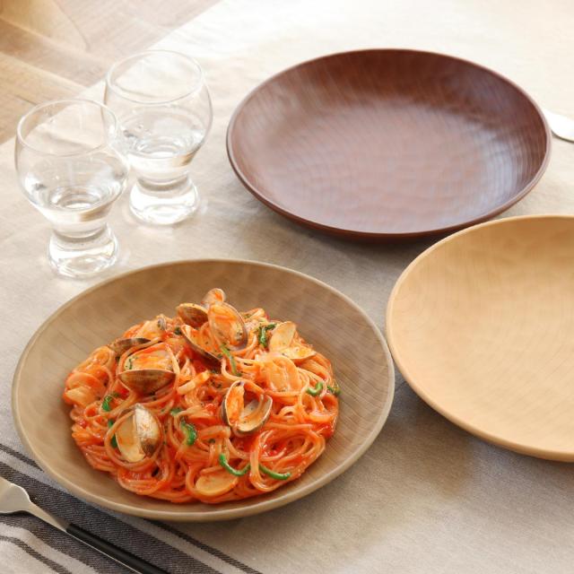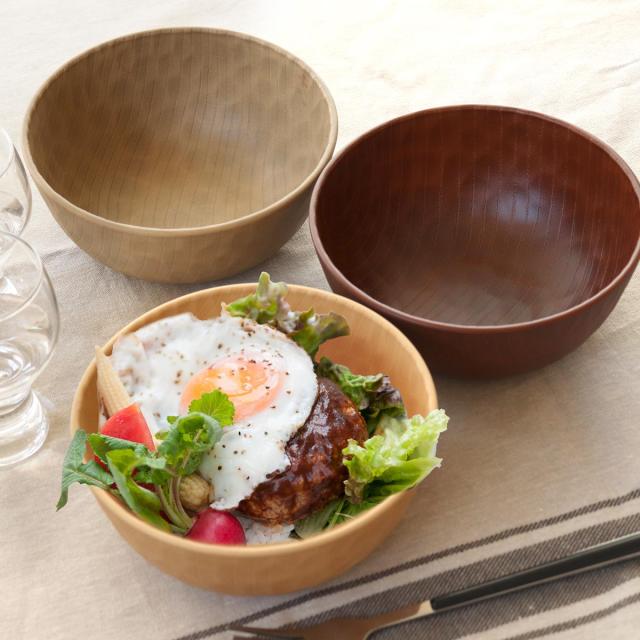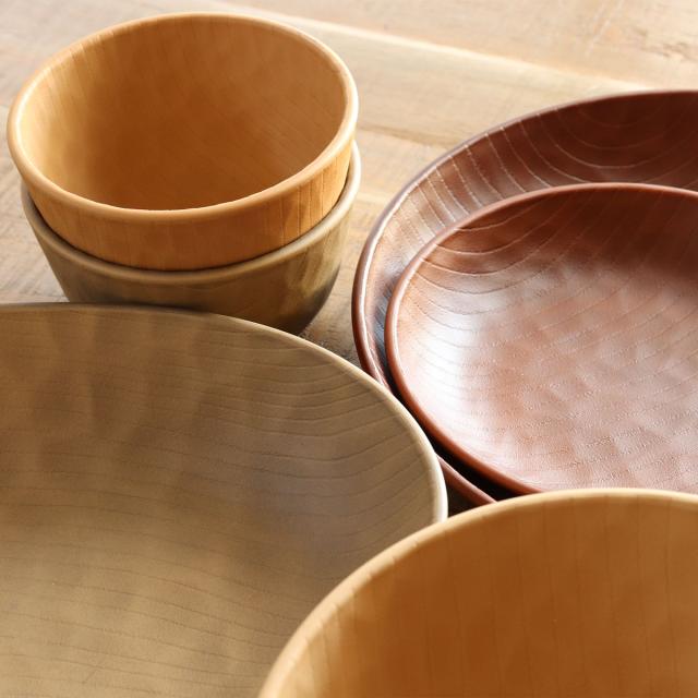 熟練の職人がひとつひとつ丁寧に手作業で塗装しています。手彫りの木のような質感が特徴であたたかみのある雰囲気を演出します。和食にも洋食にも合わせやすいので毎日の食卓で活躍しそうです。