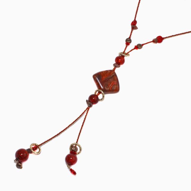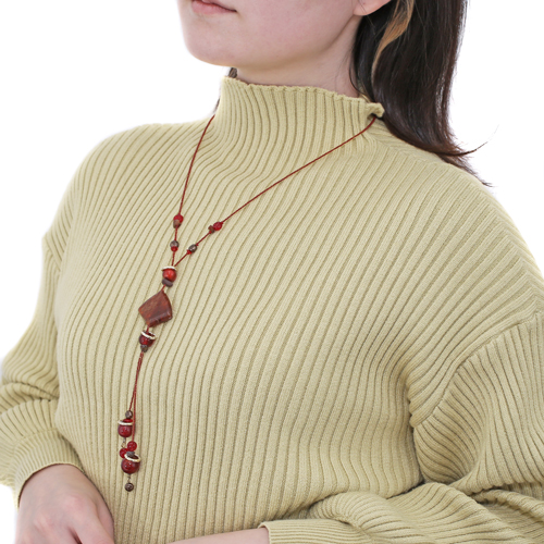 世界的に人気のYタイプチェーンを胸元に樹脂のパーツをセンス良く組合わせた上品で温かみのある逸品です。