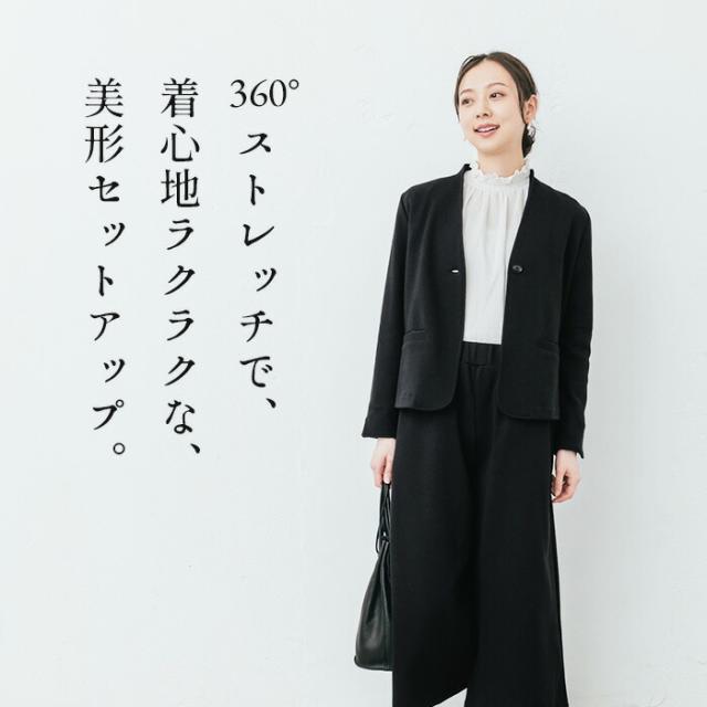 360度 ストレッチ ジャケット + ガウチョパンツ 日本製 / 卒業式 セットアップ 40代 入学式 ママスーツ スーツ 母 体型カバー おしゃれ パンツスーツ フォーマルスーツ 結婚式 ウォッシャブル 手洗い可能 洗える