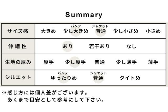 サイズ ジャケット:M・L、パンツ:M・L・LL