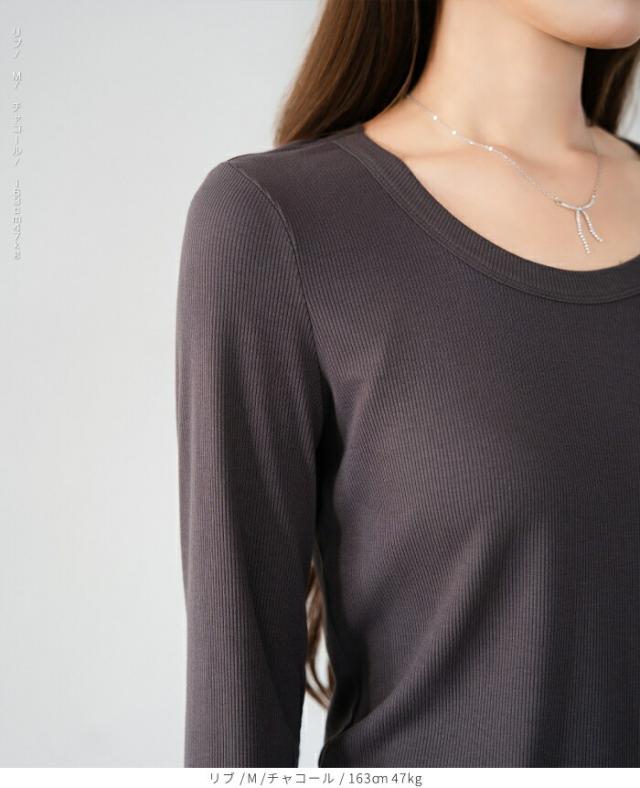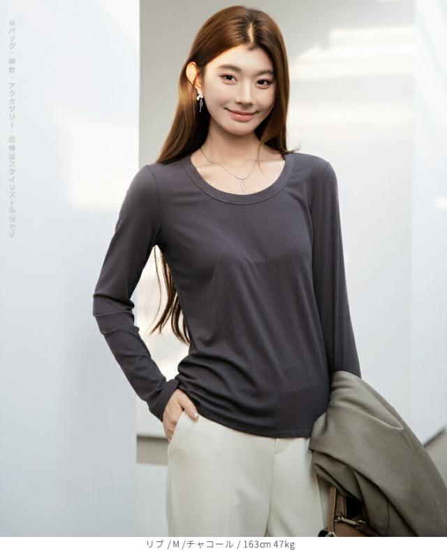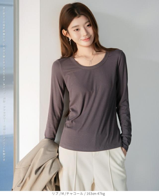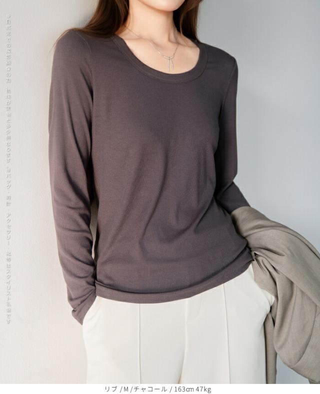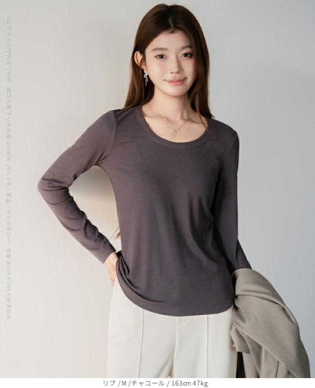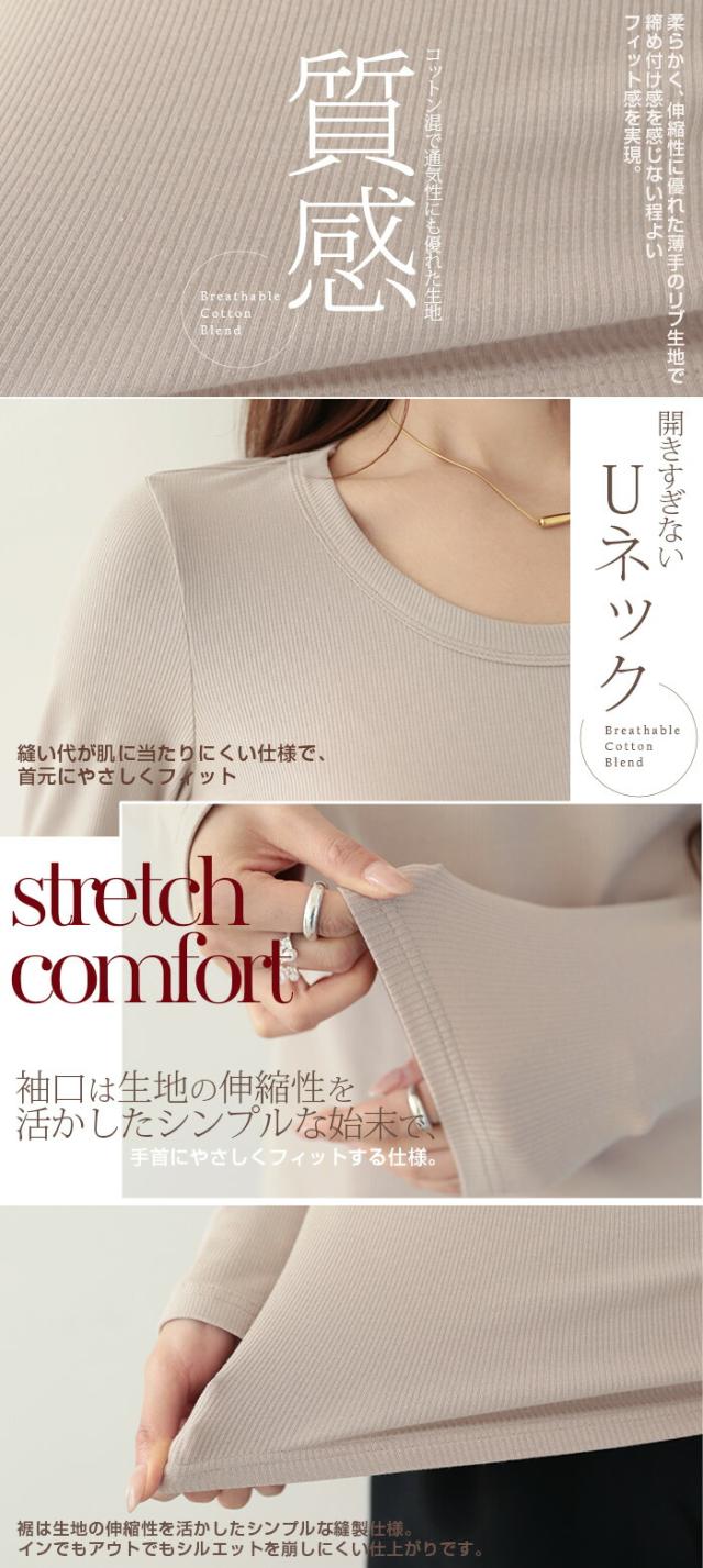 1,500円OFFクーポン!uネック tシャツ 深め レディース 長袖 カジュアル ロンT カットソー 春 秋 きれいめ ルームウエア オシャレ 無地 女性用 コットン 綿 【 Uネックリブカットソー 】