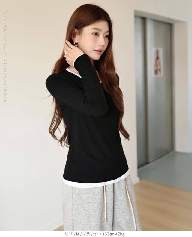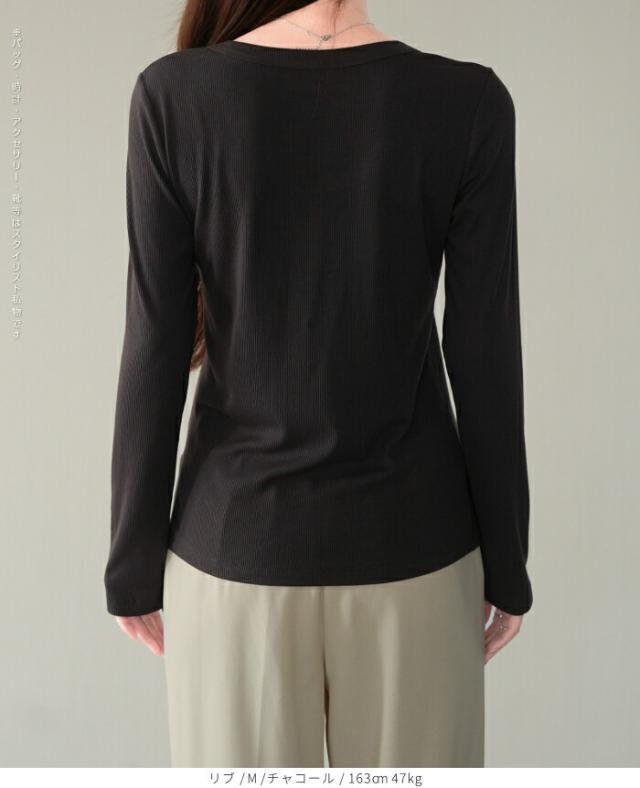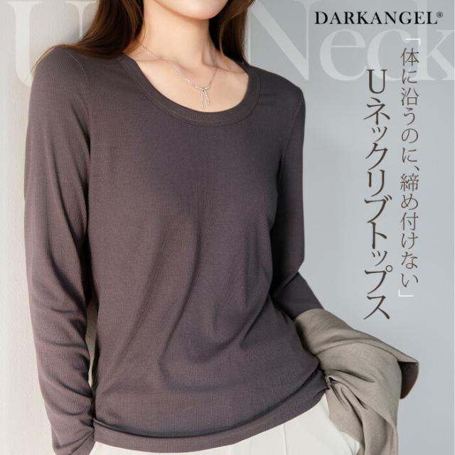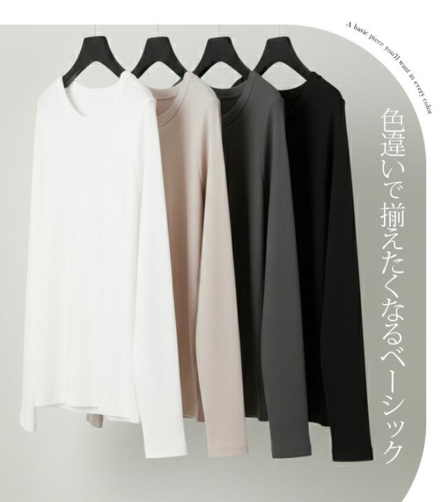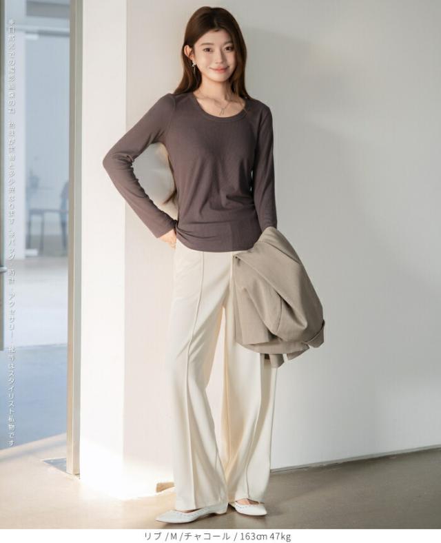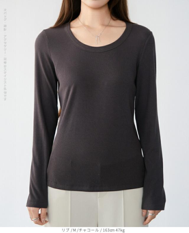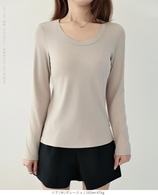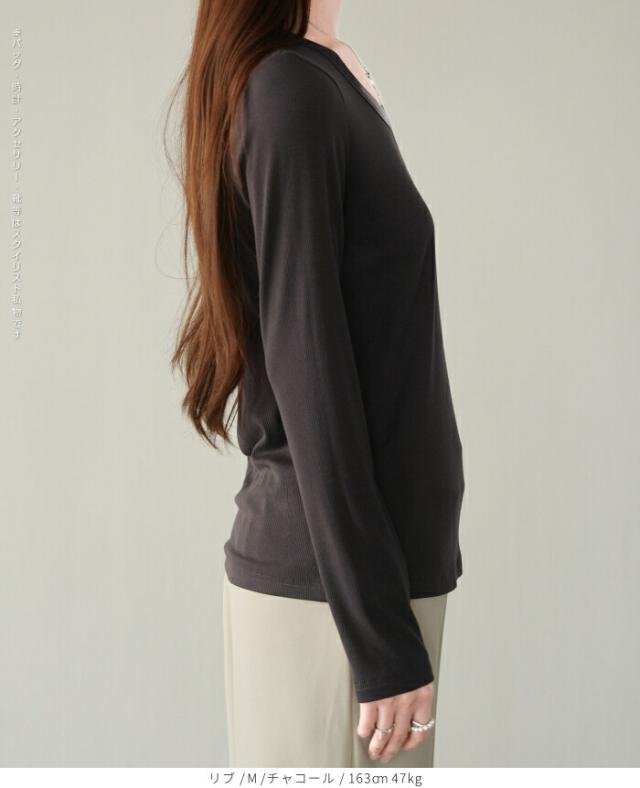 1,500円OFFクーポン!uネック tシャツ 深め レディース 長袖 カジュアル ロンT カットソー 春 秋 きれいめ ルームウエア オシャレ 無地 女性用 コットン 綿 【 Uネックリブカットソー 】